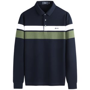 【Collision Stripes】 Lapel long-sleeved T-shirt men’s spring and autumn heavyweight business casual youth POLO shirt
