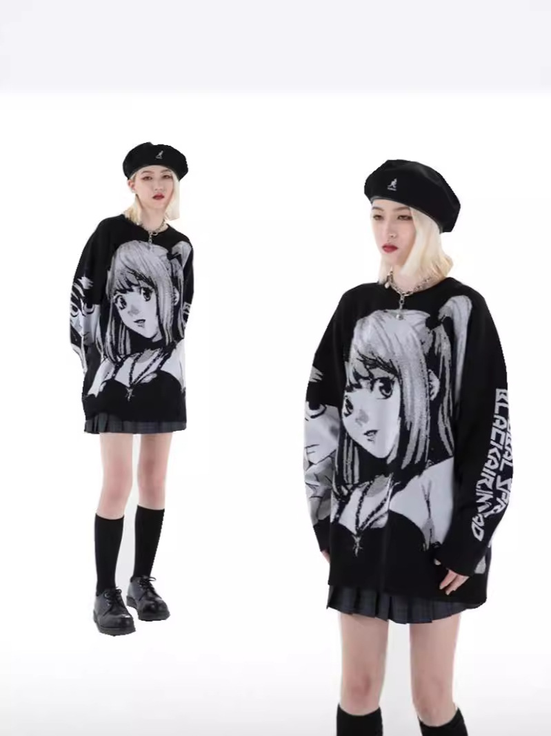 Black sweater high street style plus size European and American fashion hip-hop loose style beautiful girl pullover sweater