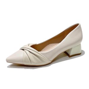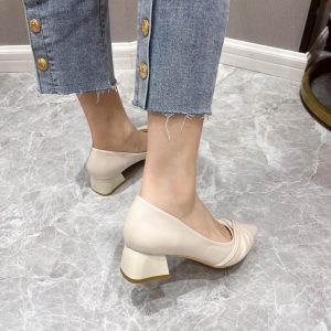 High-heeled women’s Mary Jane shoes thick heel pointed toe mid-heeled shoes bow fairy style