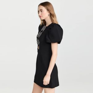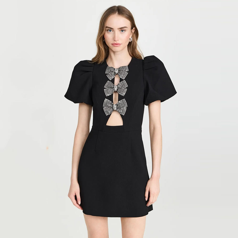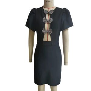 New Black Short Skirt Sexy O Neck Short Sleeve Fashion Women’s Bow Hollow Slim Bandage dress