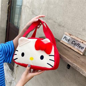 Girl handbag ins cute bow, Hello Kitty soft girl makeup bag, student daily storage, hand-held bag